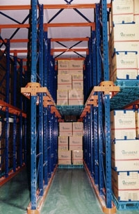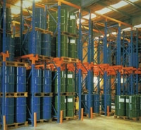 直入/駛入式料架適合少樣多量的物料儲存,通道兼做儲存空間可提高空間利用率,先進後出,後進先出。若設計為雙走道,也可先進先出。用於原料倉庫或轉運倉庫。