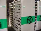 利用手動方式以機械式轉盤鏈條驅動,使櫃體在固定空間內作橫向移動,有效地發揮空間效用,增加儲存容量。 係將中型固定架底部加裝車輪台架,利用手動方式以機械式轉盤鏈條驅動, 使料架作橫向移動,有效發揮空間效用,中量型移動櫃適用於厚重書籍,資料或體積較大之物品。 適用對象:辦公室、醫院、圖書館、倉庫等,檔案資料或較大型物件存取使用。